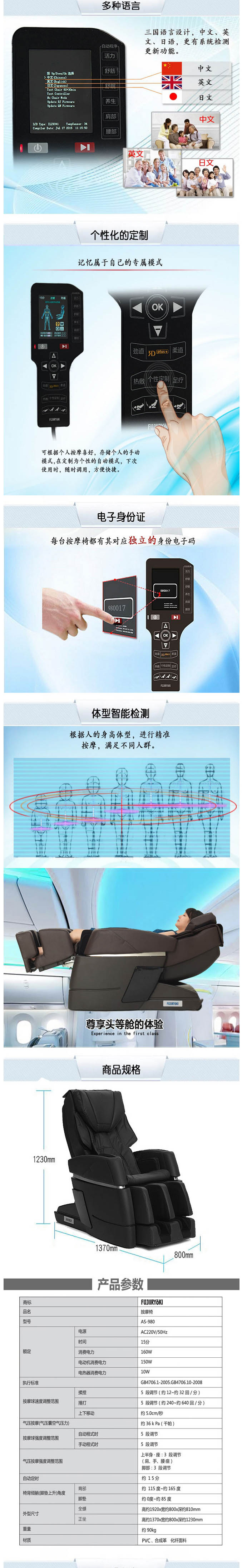 富士按摩椅AS-980(黑白两色)
