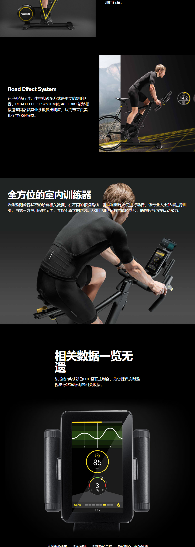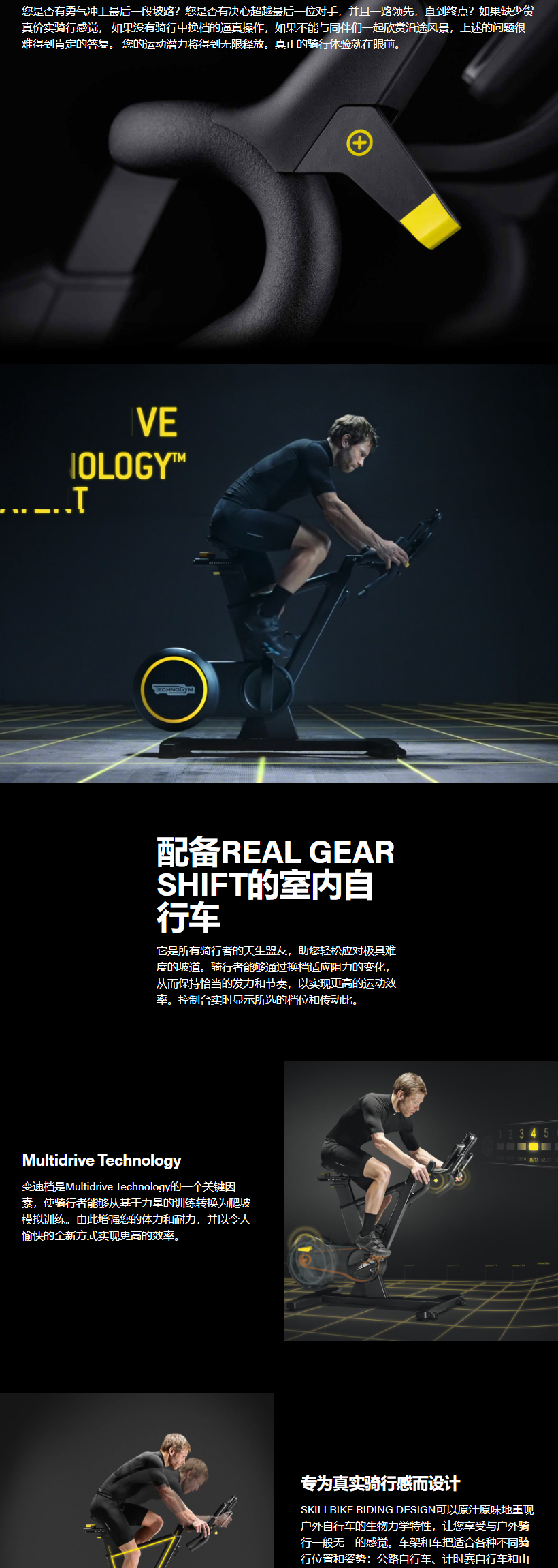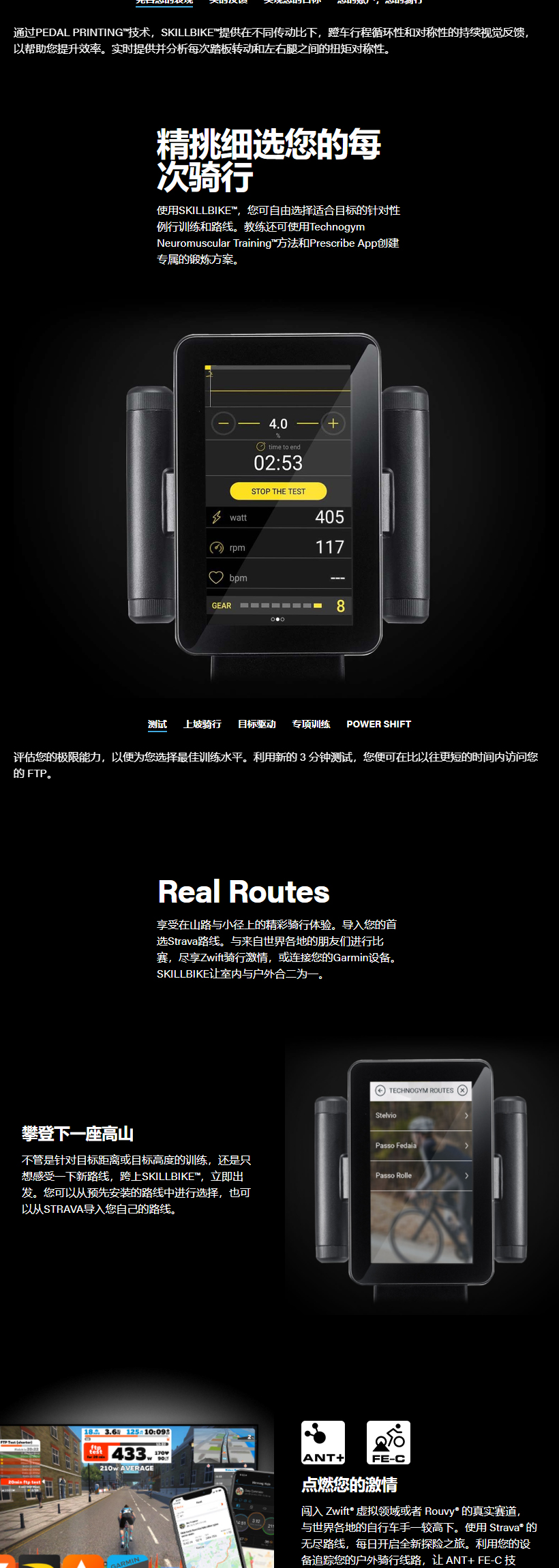 Skillbike是Technogym(泰诺健) 开发的一款革命性新型固定自行车。配备了真实档位的固定式自行车, 在室内也能体验户外骑行的激情和挑战。 无尽虚拟路线待您探索。精准、有效的反馈信息助您提高运动能力与效率。与好友展开激动人心的竞赛, 还有更多功能待您体验。